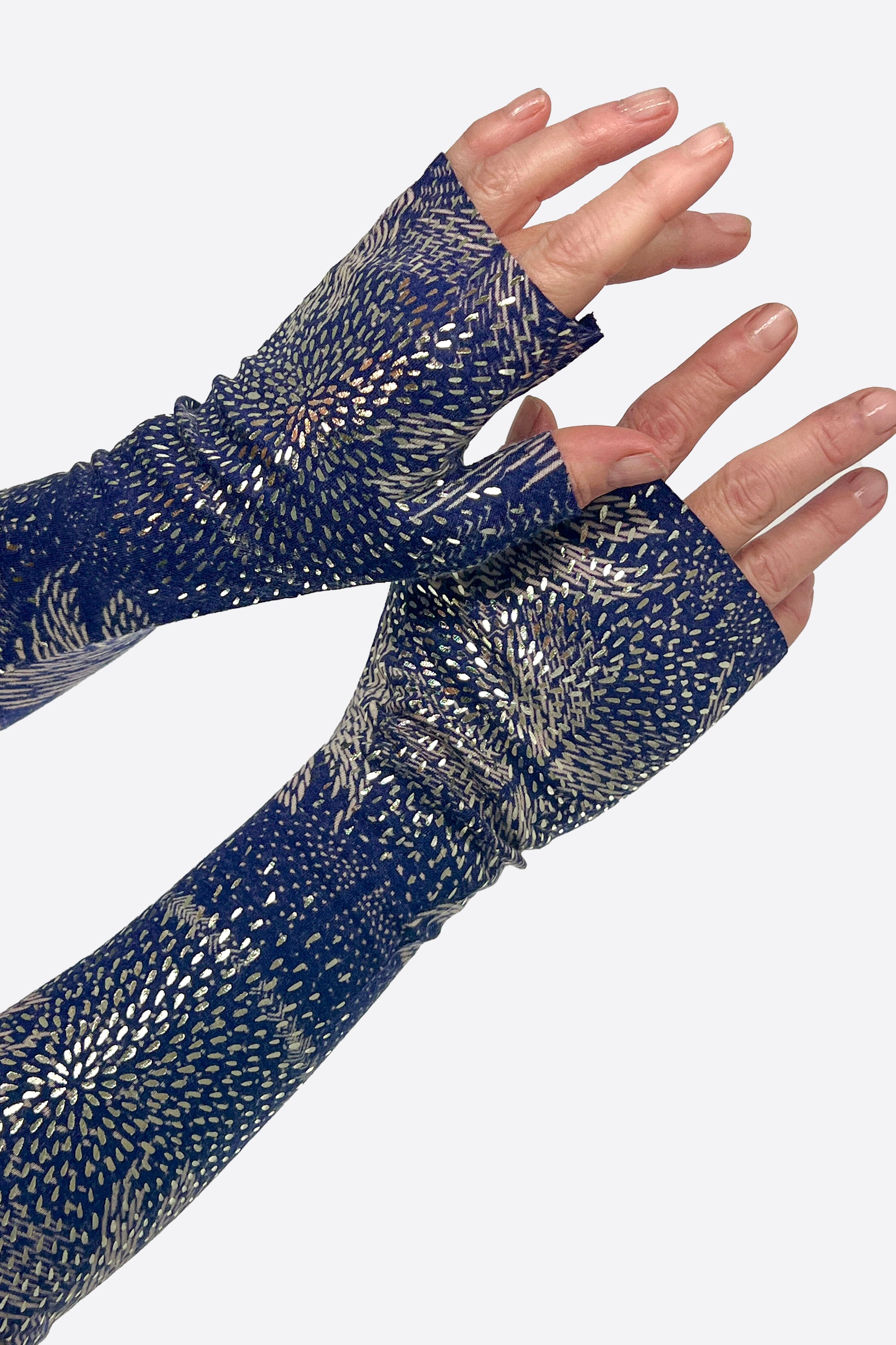 Silk screen printed by hand in our Brighton studio. The hand warmers are fingerless, so they can be worn to keep your arms and hands cosy in the colder months. Great for working in. They will also fit nicely under gloves when wrapping warmer to go outside. Perfect for gifting season.