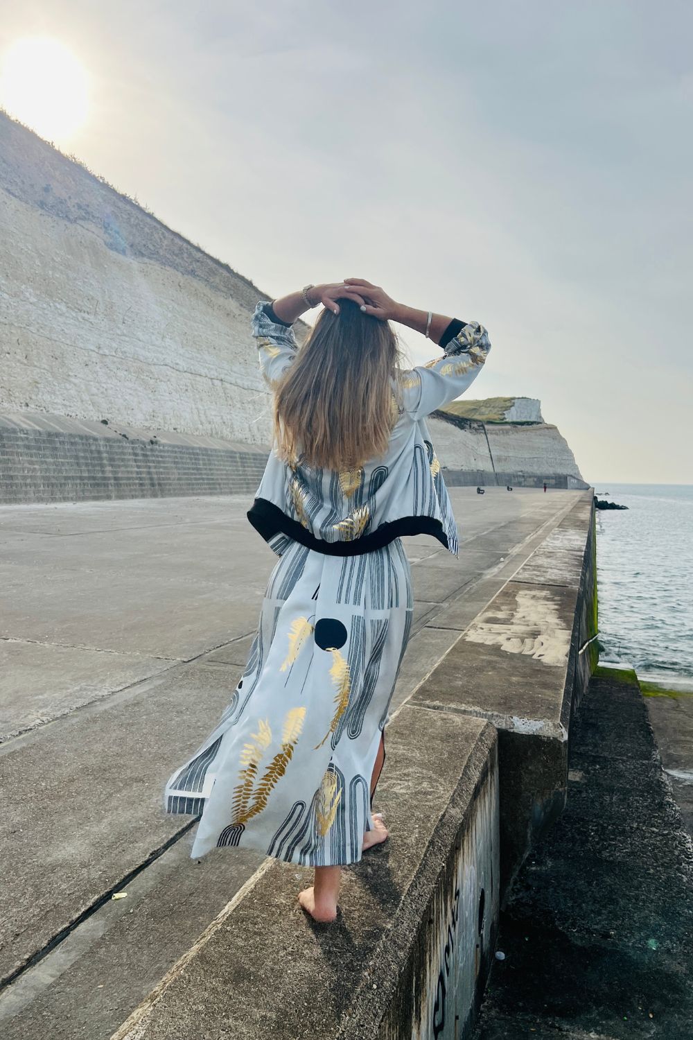 Due to this being a hand printed piece the print placement will vary from garment to garment. Slight imperfections add to the unique artistry of each piece.