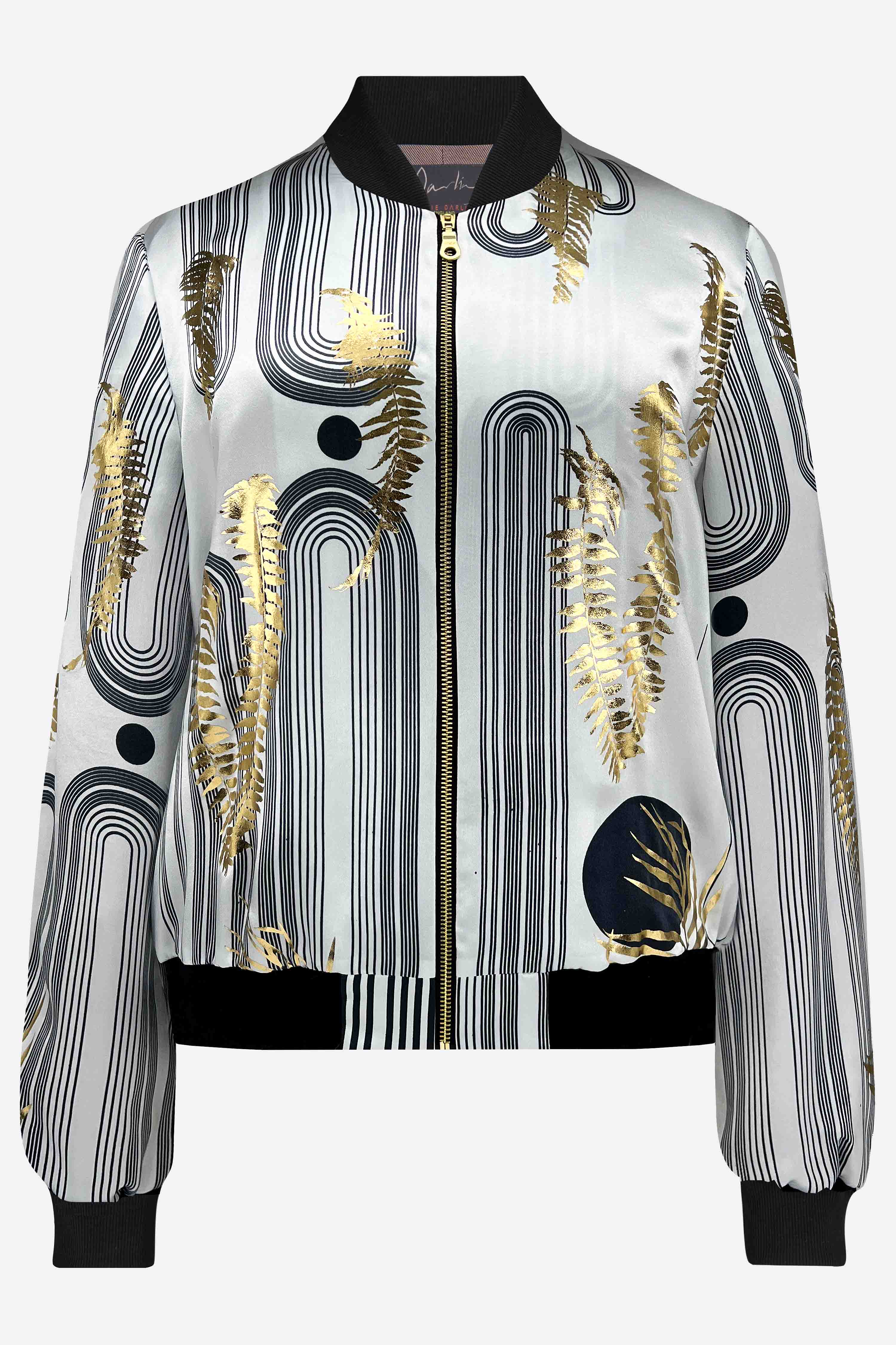 1 of 1. This silk bomber jacket has been meticulously hand printed, and is completely one-of-a-kind being the only one ever made. Experience the luxury and exclusivity of owning a truly unique piece of art.