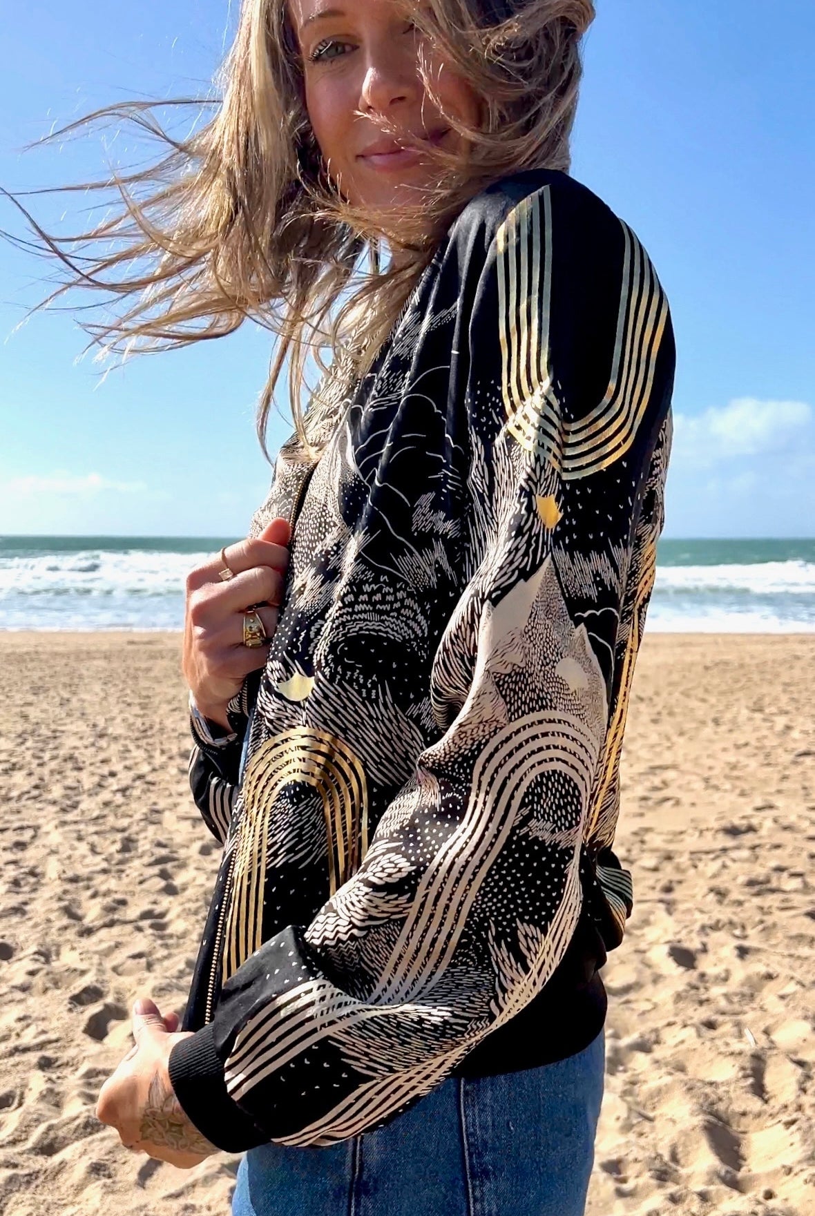 This handmade silk bomber jacket is synonymous with Sophie Darlings signature style.