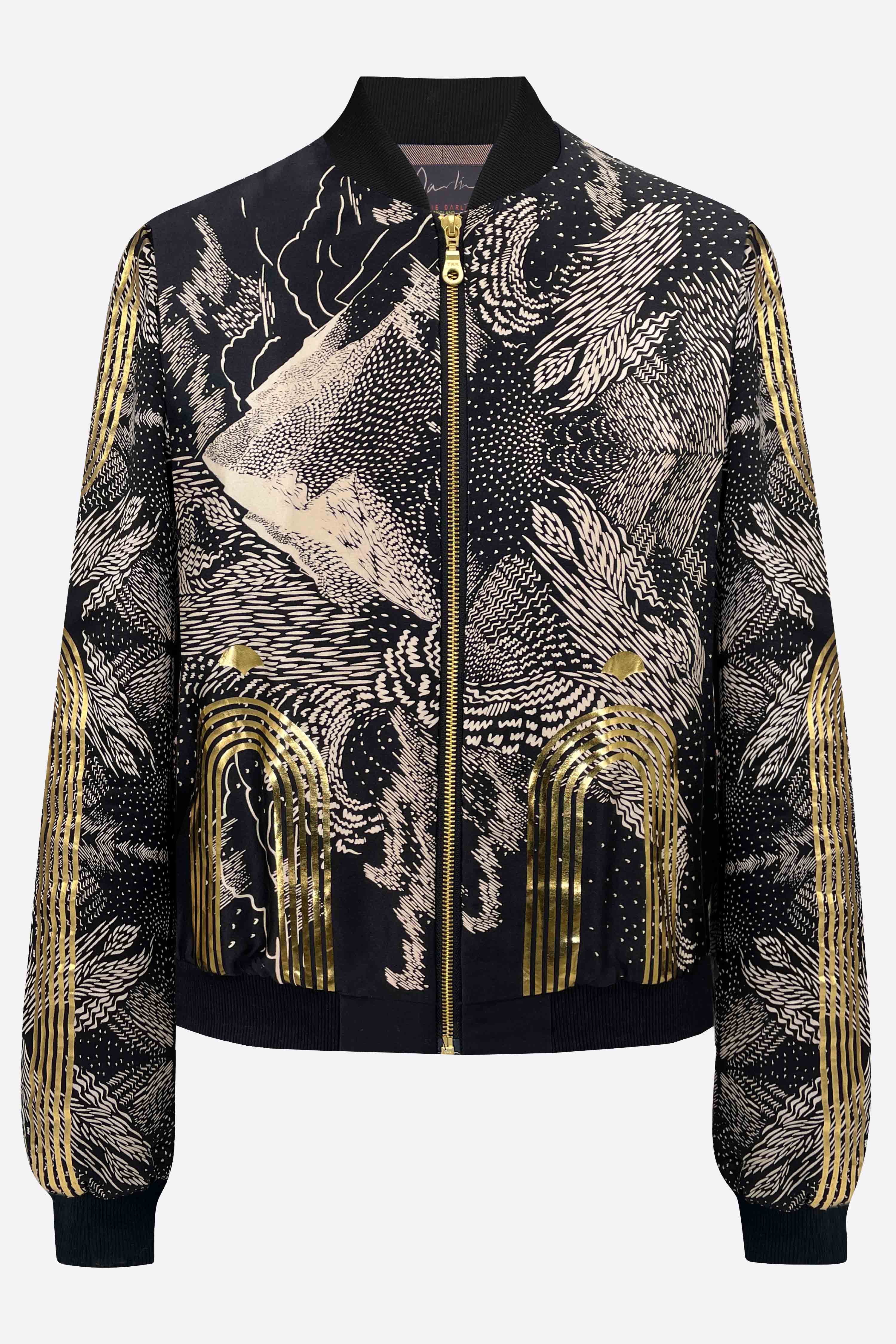 Hand Printed Silk Bomber Jacket in black and gold - Artist Edition (Print Second)