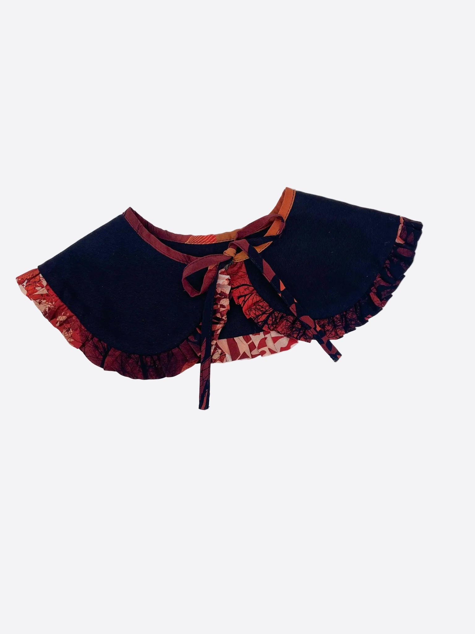 A gorgeous black collar with a tie fastening and edged in autumn moon frilled detailing. These collars are perfect for freshening up your wardrobe and adding layers to your favourite winter jumpers.